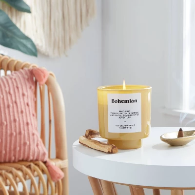 Elevate your surroundings with the 7oz Gold Exterior Painted Glass with Glass Lid Bohemian Candle Yellow from Room Essentials™. Crafted with premium wax and a quality wick, the candle ensures a steady, enduring burn, allowing you to immerse yourself in the Bohemian ambiance for extended periods. Whether you’re seeking to infuse your space with a touch of artistic flair or seeking inspiration for your creative endeavors, the Bohemian Candle promises to be your guiding light, igniting your passion and embracing your inner bohemian soul.