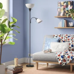 Tripod Floor Lamp With Shade Black – Room Essentials™: Modern Standing Light, ETL Listed, Metal Body