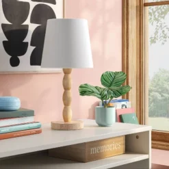 Turned Wood Stick Lamp Brown – Room Essentials™: Modern Accent Table, ETL Listed, No Bulb Included